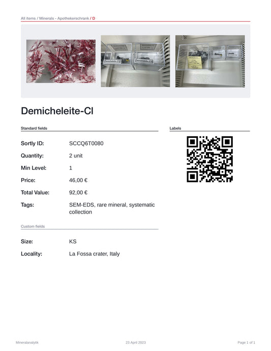 Demicheleite-(Cl) La Fossa, Messina, Sicily, Italy
