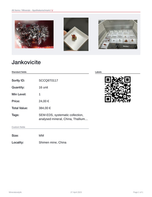 Jankovicite Shimen mine, Hunan, China SEM-EDS confirmedNormaler Preis €42,00 EURNormaler PreisGrundpreis pro