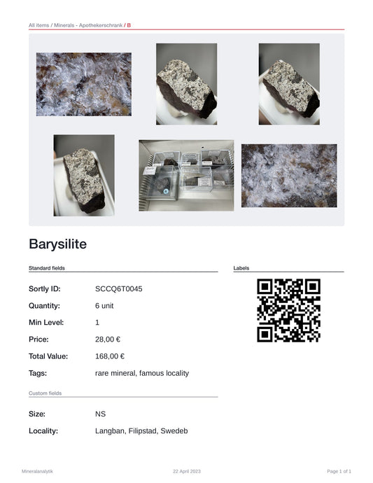 Barysilite Langban, Bergslagen, Filipstad, Sweden SEM-EDS conf.