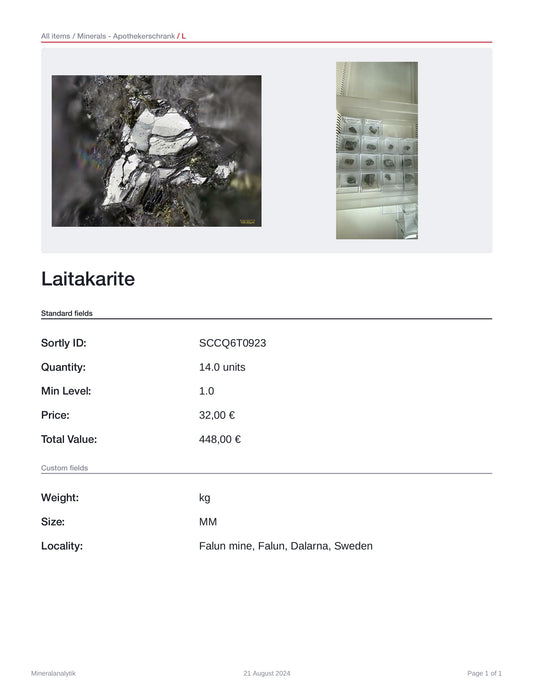 Laitakarite & Weibullite Falun mine, Dalarna, Sweden SXRD & EDX analysedRegular price €42,00 EURRegular priceUnit price per