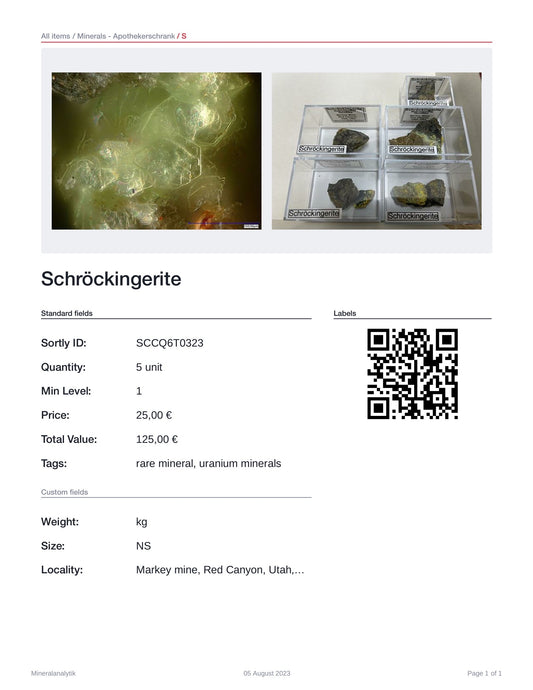 Schultenite Geister Vein, Rovnost mine, Jáchymov, CZ EDS, Raman & XRD 1547