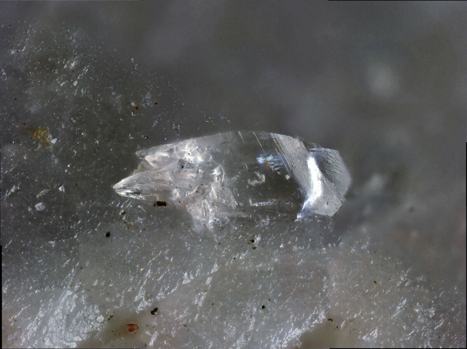 Colourless behoite on matrix from Almenningen Tvendalen, Norway.
