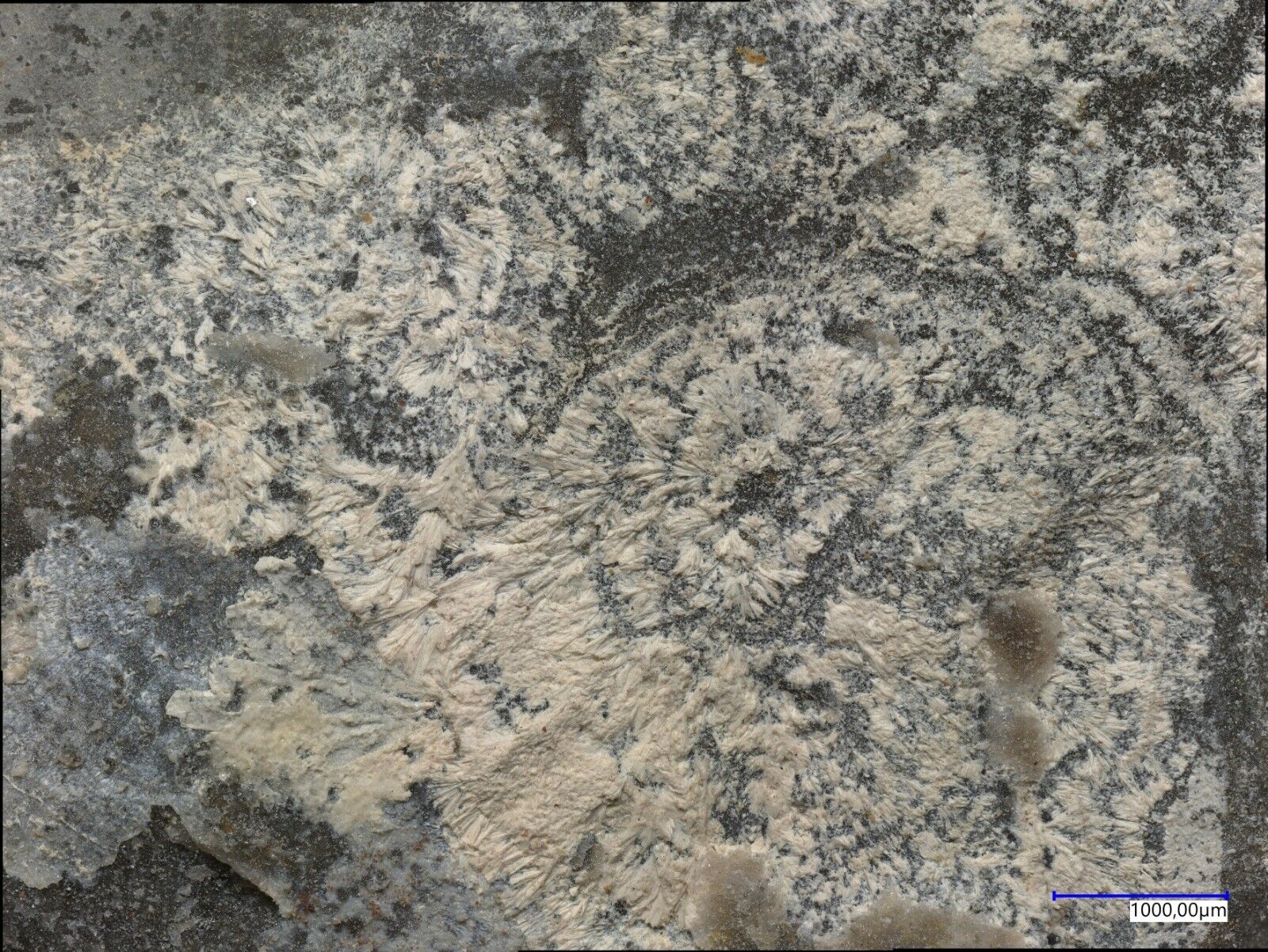 Beige radial carlfriesite on quartz from the High Grade Hill, Utah, USA. Specimen size is 3.0 x 2.1 x 0.5 cm