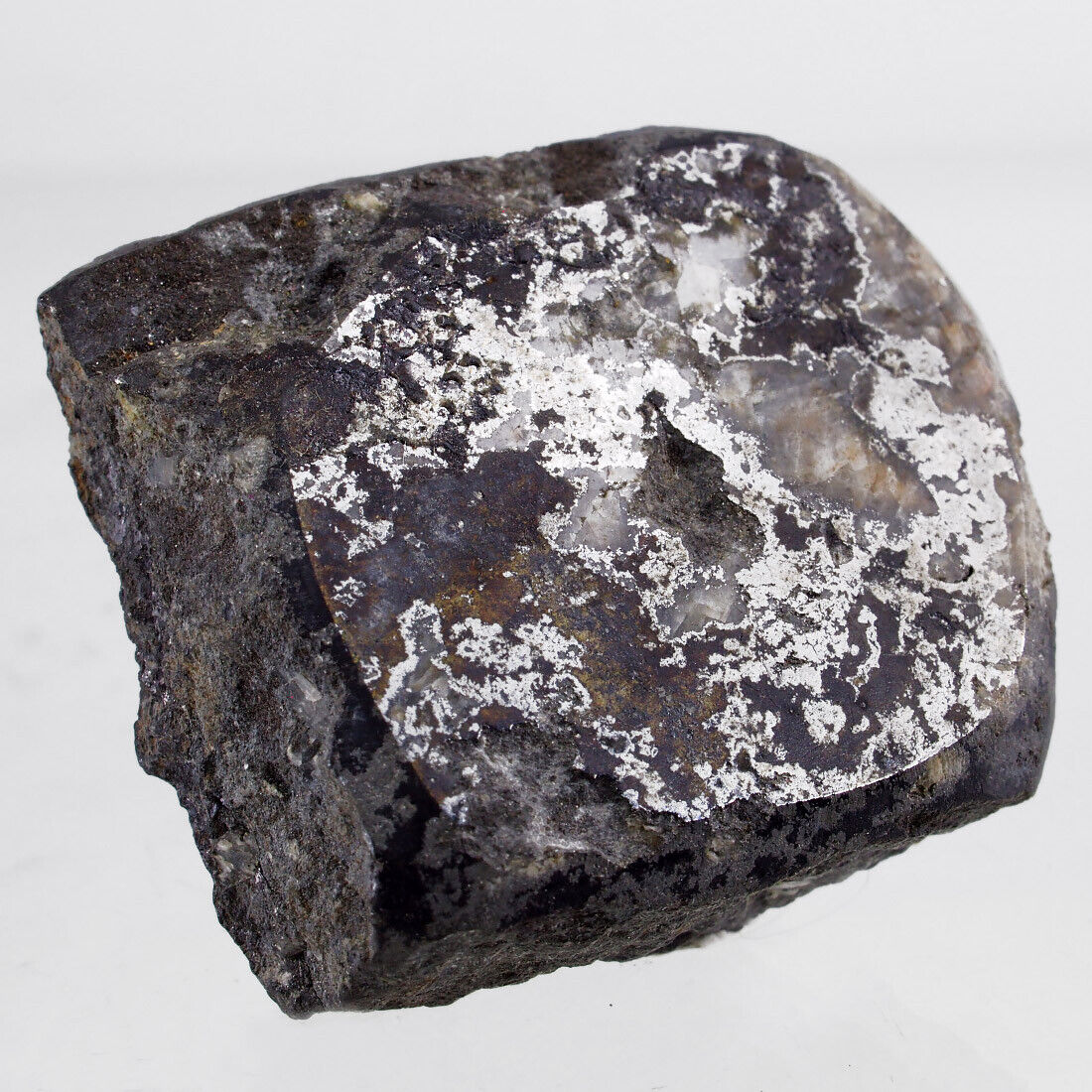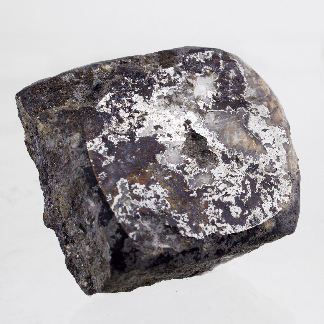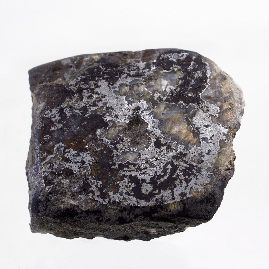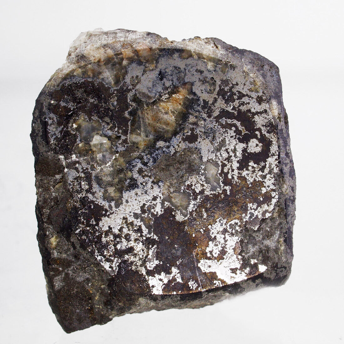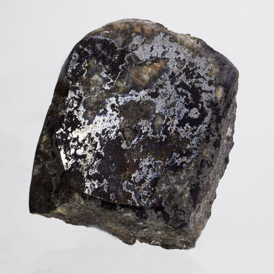 A polished section of dyscrasite with galena from the famous St. Andreasberg mining district. Comes with an old label dated to 1976.