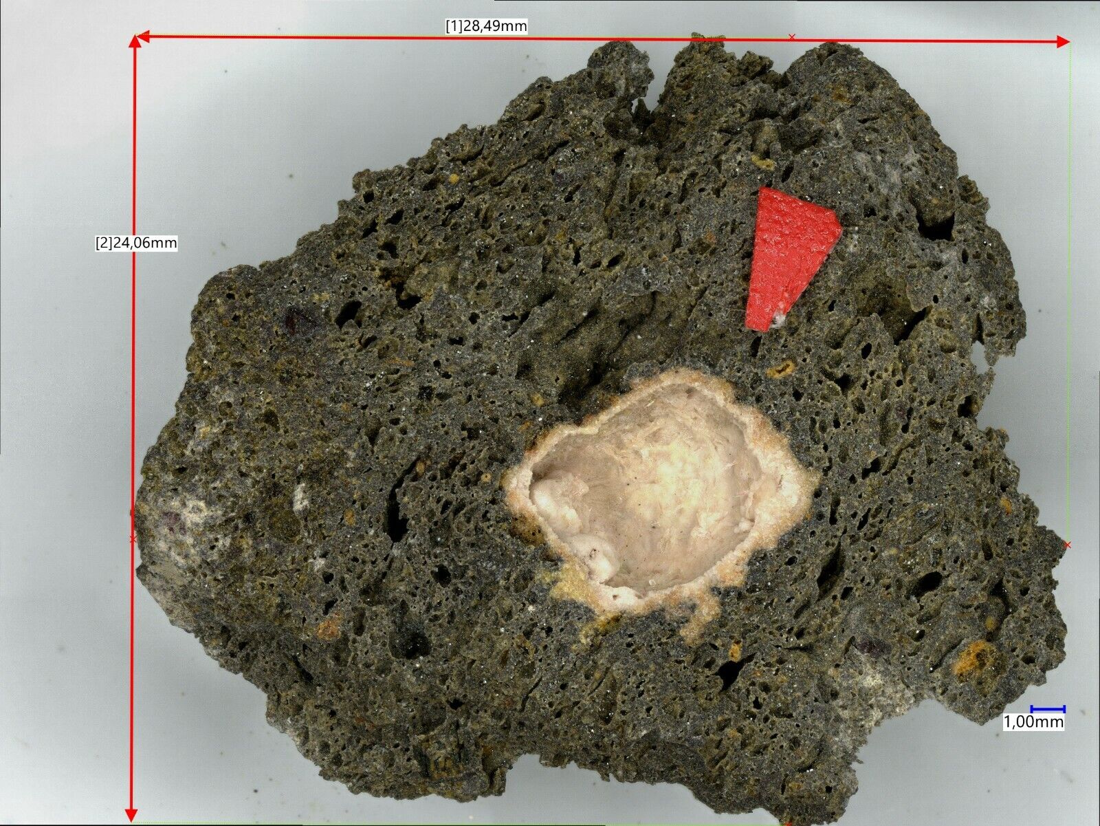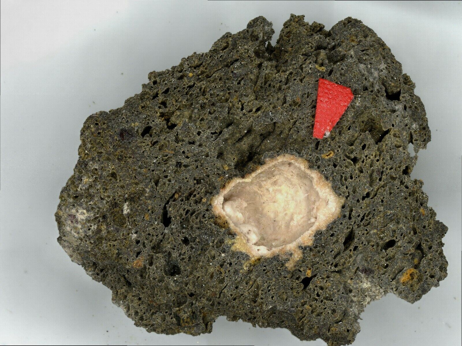 Pink ferri-obertiite from Rothenberg quarry, Bell, Mendig, Eifel, Germany. Specimen size is 3 x 2.6 x 1.3 cm