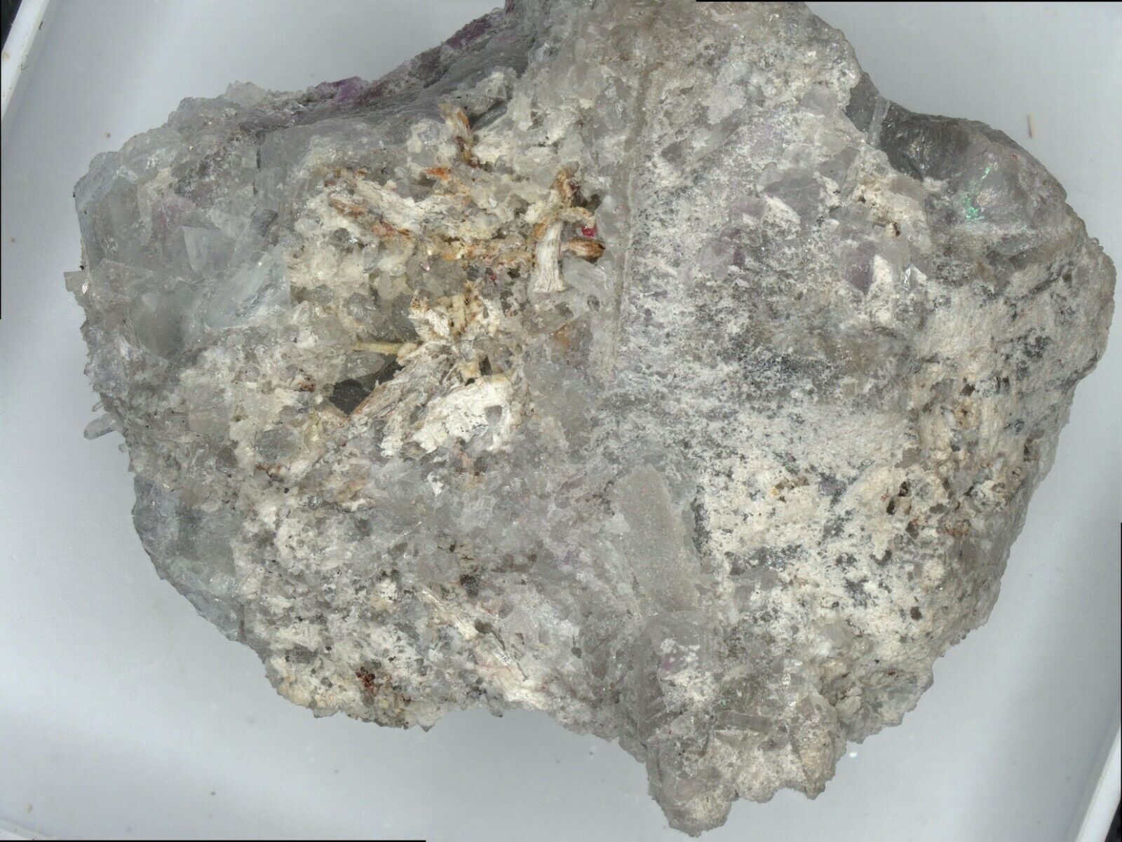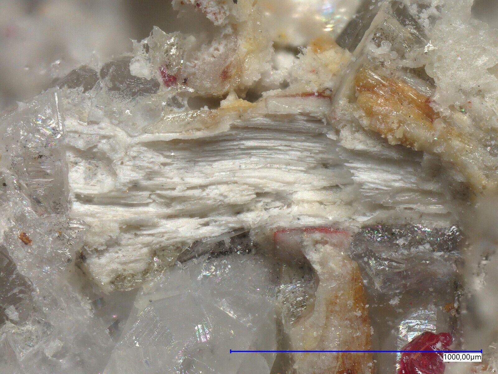 Pale fibrouse hydroxycalcioromeite from Khaidarkan, Kyrgyzstan. EDS confirmed. 2.3 x 1.8 x 0.8 cm