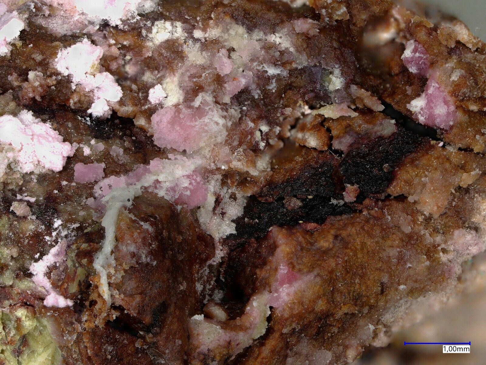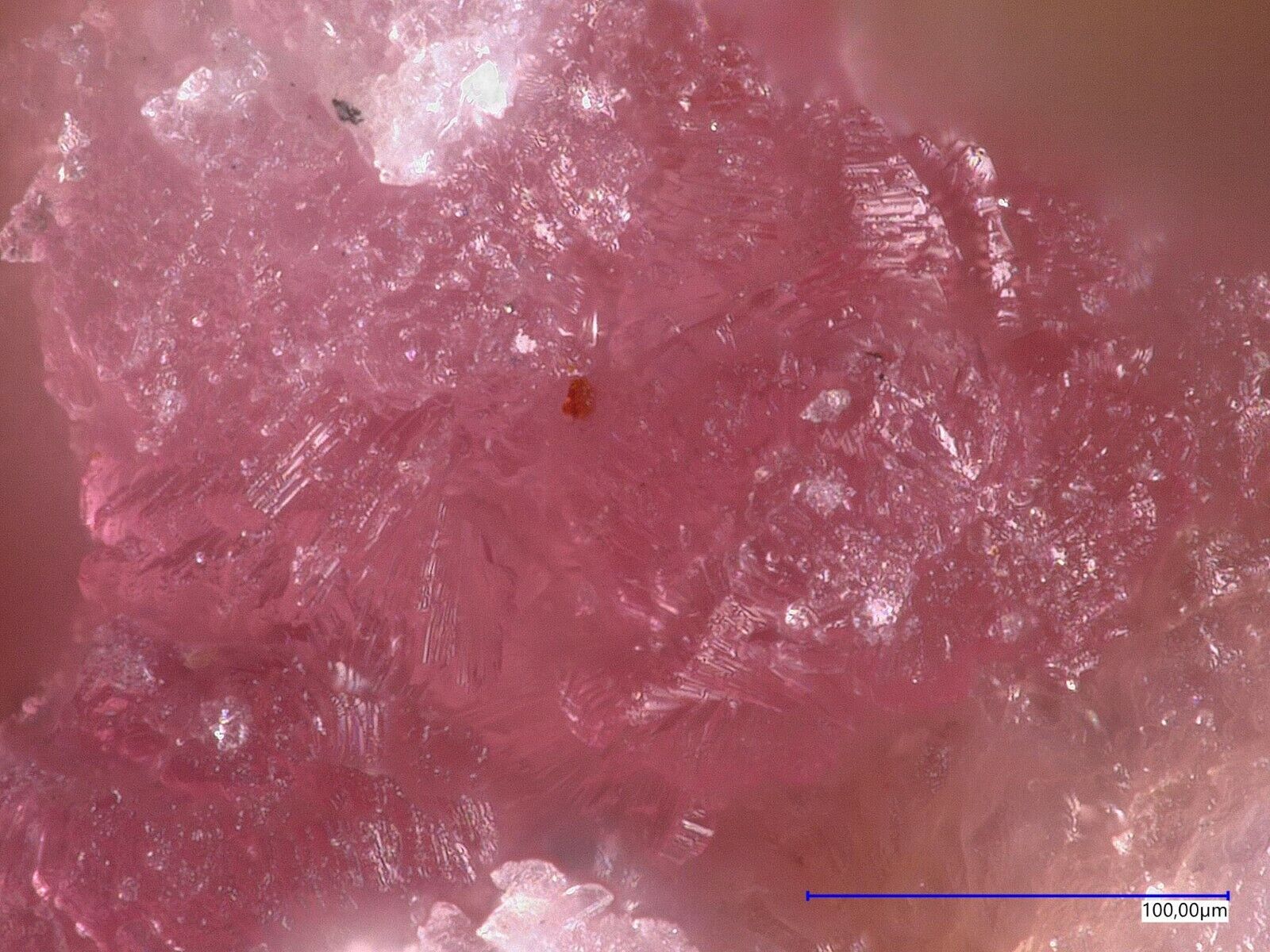 Pinke Juansilvait Aggregate von der Torrecillas mine, Iquique, Chile. Untersuchtes Material.  Größe: 1.7 x 1.5 x 1.0 cm