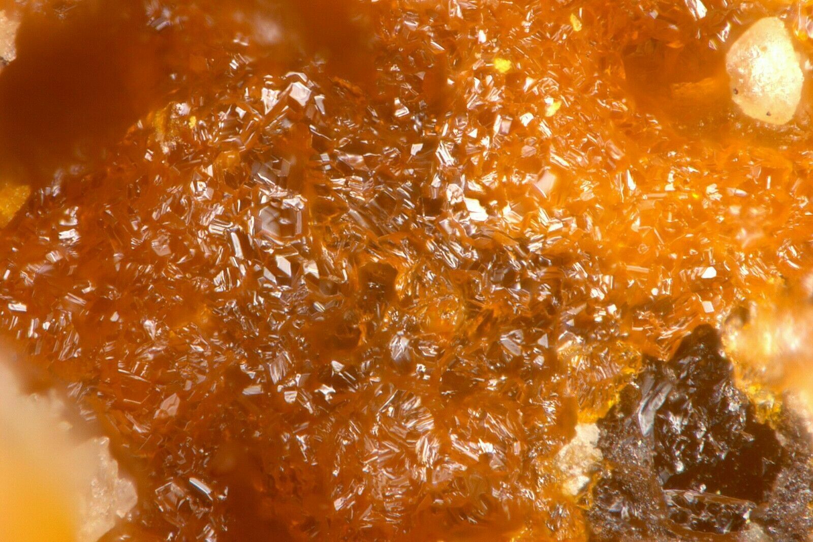 Rich specimen hosting intense yellow magnesiopascoite in crystals. Specimen size is