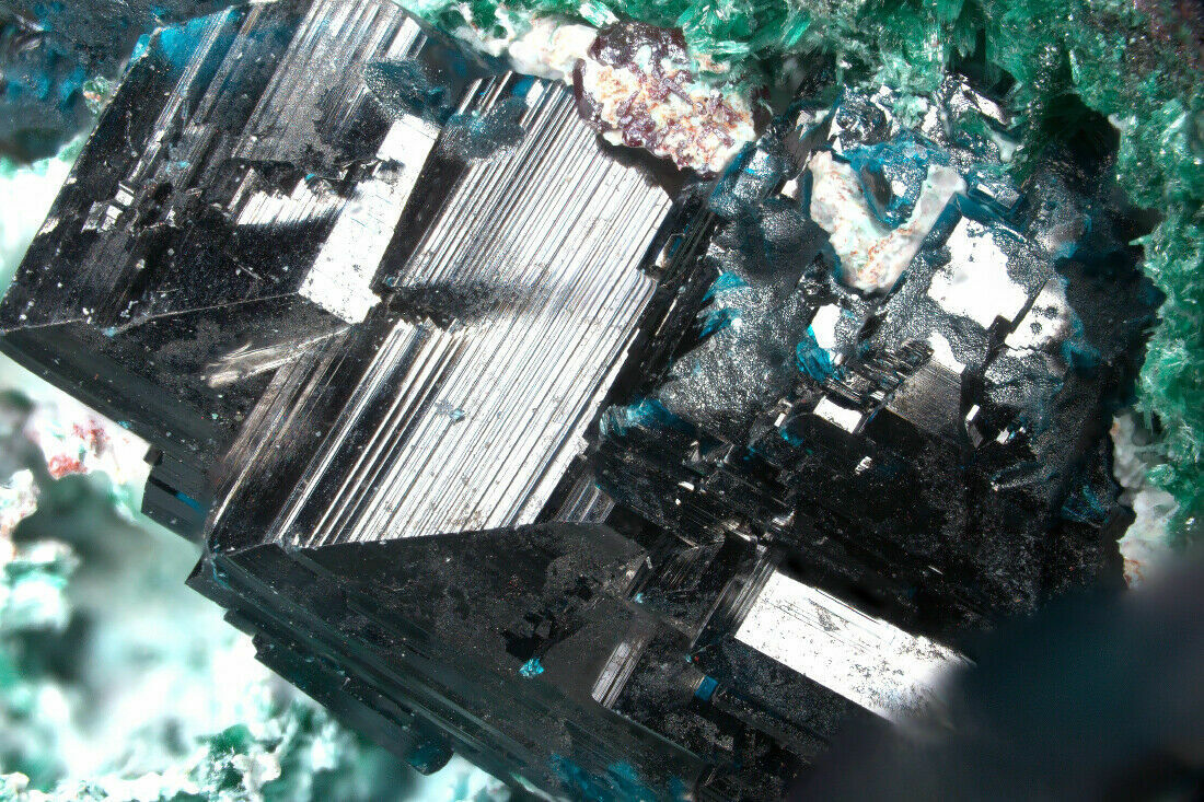Several large rouaite crystal clusters on malachite-cuprite matrix. Excellent specimen. Tenke deposit, Kolwezi, Congo