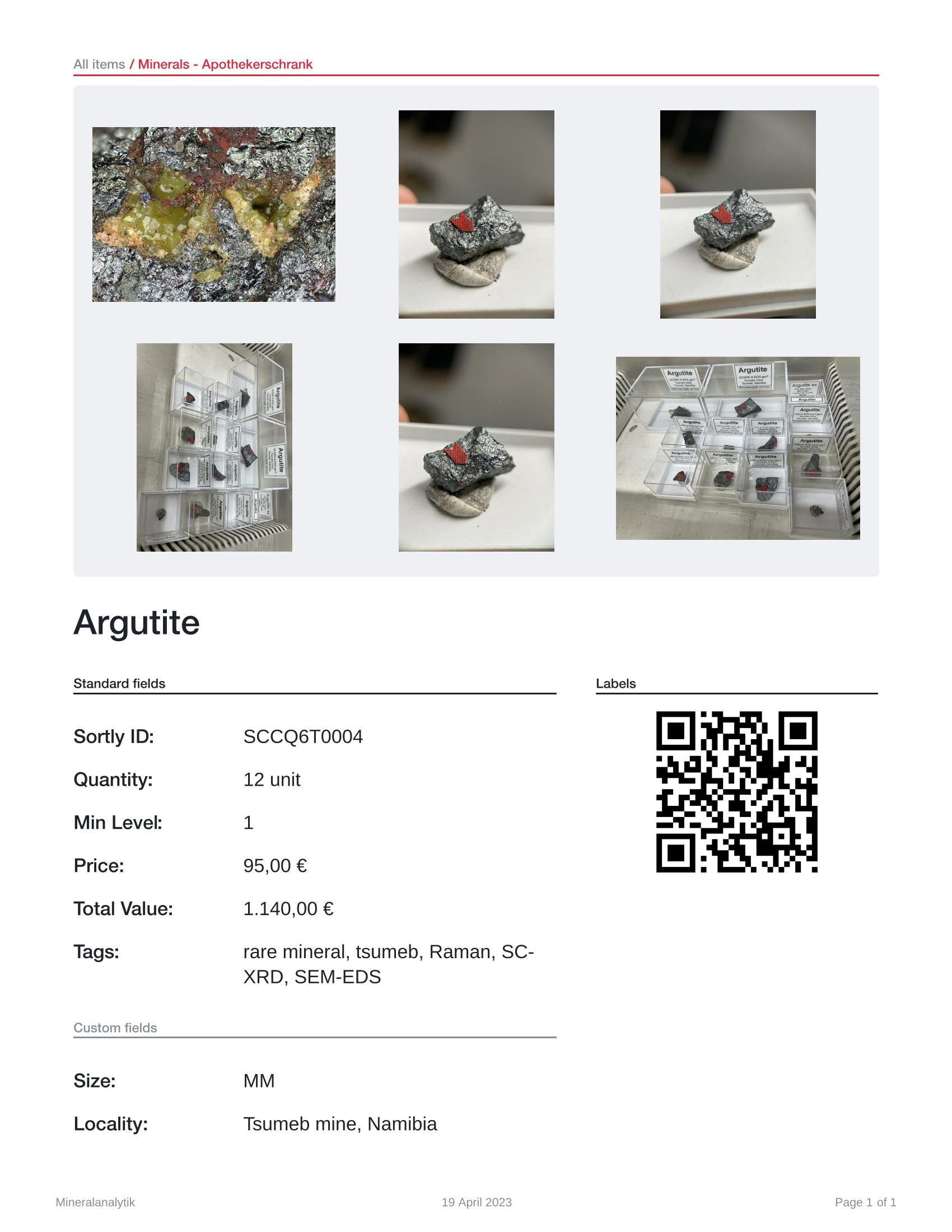 Eine Probe zu 95€ (MM, KS) Argutit xx von der Tsumeb mine, Namibia