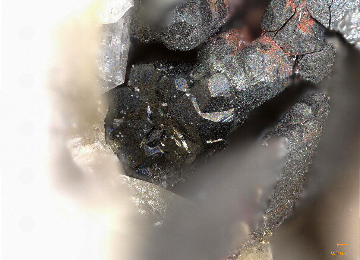 Grey metallic wallisite associated with incomsartorite, hendekasartorite and enneasartorite in a dolomite cavity.